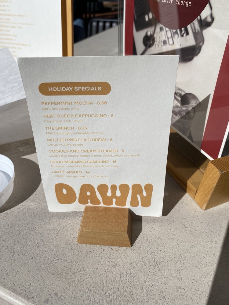 The ambiance is equally delightful, featuring comfortable indoor seating complemented by soon-to-launch outdoor options. With free Wi-Fi and happy hour specials, it’s the ideal spot for casual meetups or coffee-fueled productivity. Patrons appreciate the friendly service, making each visit feel personal. As the reviews highlight, Dawn Cafe is not just a place for great coffee; it’s a welcoming oasis for anyone seeking quality and community.